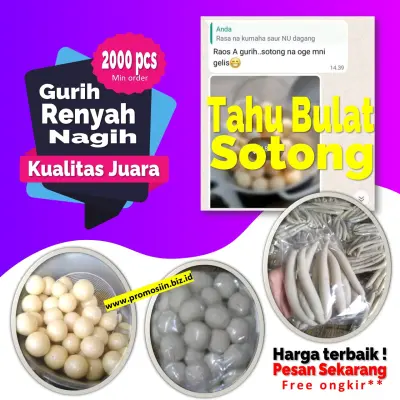 Nikmati tahu bulat dan sotong segera, tanpa harus menunggu ! Nikmati kudapan terbaik untuk keluarga dengan harga terbaik hanya di sini . Klik tombol WA nomor di bawah ini .