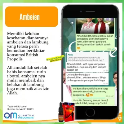 | Program Hamil dan Kehamilan | Meningkatkan kesuburan dan mendukung kesehatan selama kehamilan. | "Saya lebih sehat dan bertenaga selama kehamilan berkat British Propolis." |