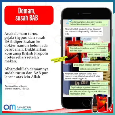 Untuk mendapatkan British Propolis dengan harga terjangkau dan promo istimewa, tekan tombol WhatsApp kami di bawah ini .