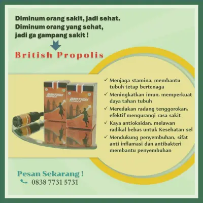 Baca juga: Testimoni British Propolis Untuk Menyembuhkan Asam Lambung Dan Gerd Apa yang dimaksud dengan British Propolis? British Propolis adalah suplemen kesehatan yang mengandung propolis berkualitas unggul dari Inggris . Propolis adalah cairan yang dihasilkan lebah dari resin pohon, dikenal dengan sifat antibakteri, antivirus, serta antiinflamasi . British Propolis dipilih banyak orang untuk menjaga imunitas, meningkatkan kesehatan, |